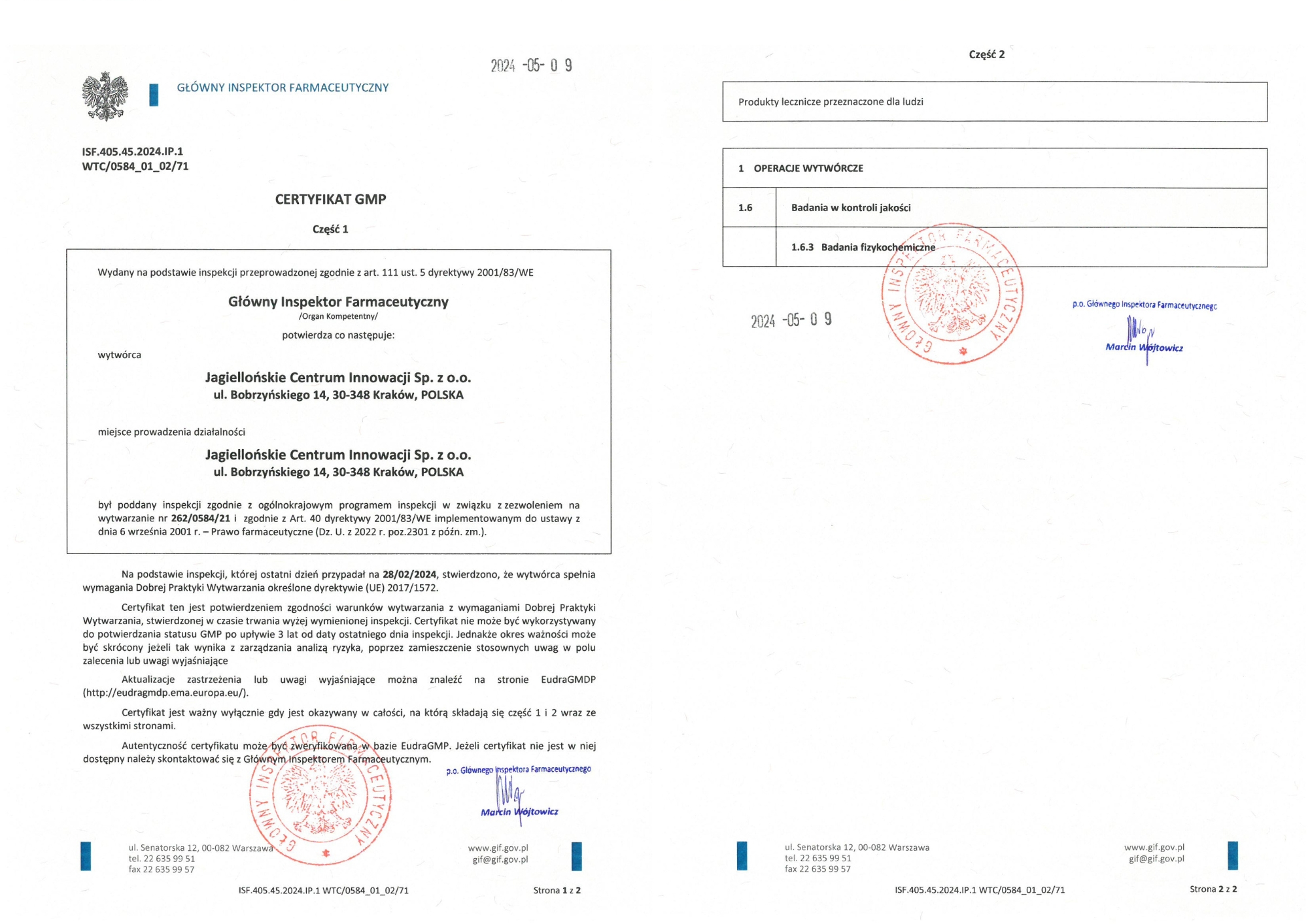 w oparciu o wymagania międzynarodowych Norm: PN-EN ISO 9001, PN-EN ISO 17025, PN-EN ISO 13485, PN-EN ISO 22716 oraz wymagania GMP określone w Rozporządzeniu Ministra Zdrowia w sprawie Dobrej Praktyki Wytwarzania